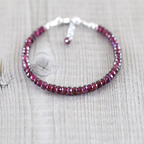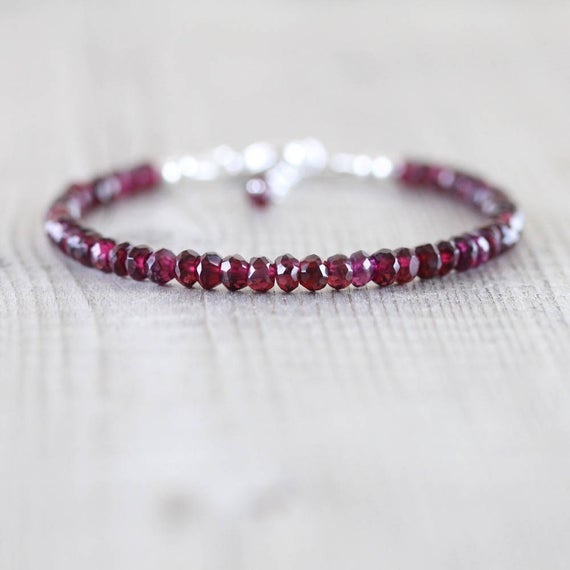 At a Great Price925 sterling Silver Blush Jewelry 4-4.5mm stacking Red Rhodolite Garnet Bracelet Rondelle, Faceted 7" for mens, womens, gf, bf & Adult.