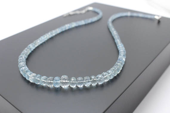 At a Great Price925 sterling Silver Blush Jewelry 4-9mm stacking Blue Brilliant Aquamarine Necklace Rondelle, Faceted 17" for mens, womens.