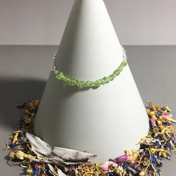 925 sterling Silver Blush Jewelry 4x6mm stacking Green Peridot Bracelet Chips, Faceted 7" for mens, womens, gf, bf & Adult.