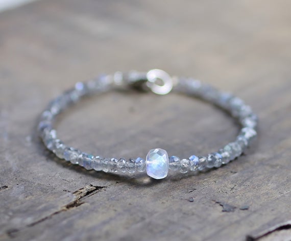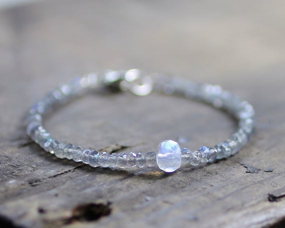 At a Great Price925 sterling silver Blush Jewelry 5.5-6mm Multi Colour Labradorite & Moonstone stacking Bracelet Round, Faceted 18cm for mens, womens, gf, bf and adults.