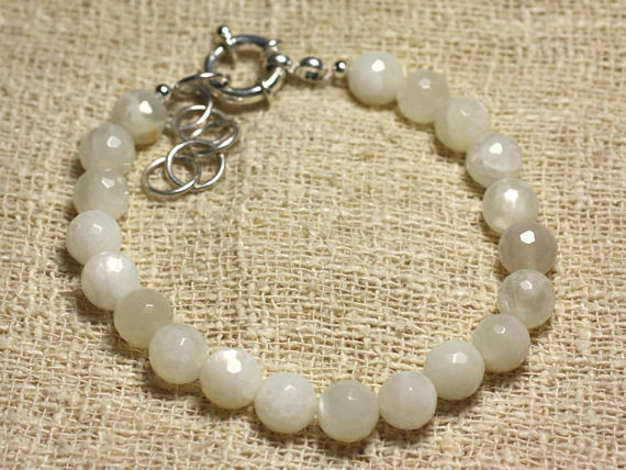 At a Great Price925 sterling Silver Blush Jewelry 9mm stacking White white Moonstone Bracelet Round, Faceted 7.5" for mens, womens, gf, bf & Adult.