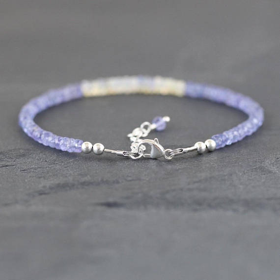 At a Great Price925 sterling Silver Blush Jewelry Silver Helling 3.5mm stacking Blue Ethiopian Welo Opal & Tanzanite Bracelet Rondelle, Faceted 7" for mens, womens, gf, bf & Adult.
