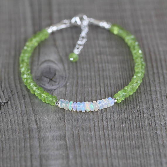 At a Great Price925 sterling Silver Blush Jewelry Silver Helling 3.5mm stacking Multi Ethiopian Opal & Peridot Bracelet Rondelle, Faceted & Smooth 7" for mens, womens, gf, bf & Adult.