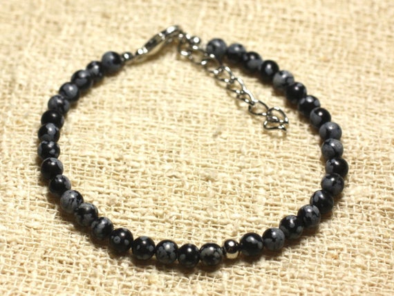 At a Great Price925 sterling Silver Blush Jewelry Silver Helling 4mm Stracking Black snowflake Obsidian Bracelet Round, Smooth 7" for mens, womens, gf, bf & Adult.