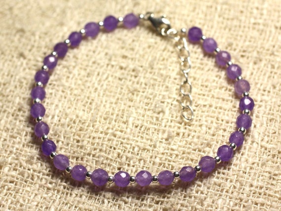 At a Great Price925 sterling Silver Blush Jewelry Silver Helling 4mm Stracking Purple Purple Jade Bracelet Round, Faceted 7" for mens, womens, gf, bf & Adult.