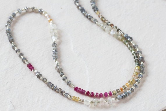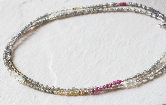 925 sterling silver Bridesmaid Jewelry 2-3mm Multi Colour Mystic Labradorite, Sapphire & Ceylon Moonstone stacking Necklace Rondelle, Faceted 16inch for mens, womens, gf, bf and adults.