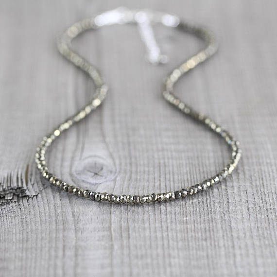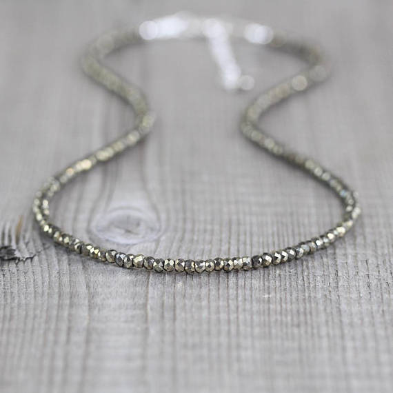 At a Great Price925 sterling Silver Bridesmaid Jewelry 2.5-3mm stacking Silver Pyrite Necklace Round, Faceted 16" for mens, womens, gf, bf & Adult.