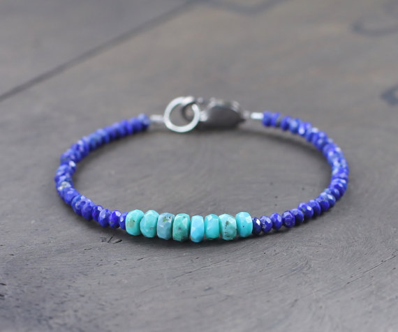At a Great Price925 sterling silver Bridesmaid Jewelry 3-4.5mm Multi Colour Lapis & Turquoise stacking Bracelet Rondelle, Faceted 18cm for mens, womens, gf, bf and adults.