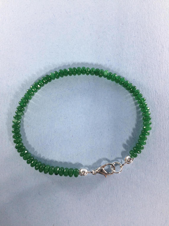 At a Great Price925 sterling Silver Bridesmaid Jewelry 3-4mm stacking Green Emerald Necklace Rondelle, Smooth 16" for mens, womens, gf, bf & Adult.