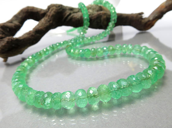 At a Great Price925 sterling Silver Bridesmaid Jewelry 4-6mm stacking Green Colombian Emerald Necklace Rondelle, Faceted 17" for mens, womens.