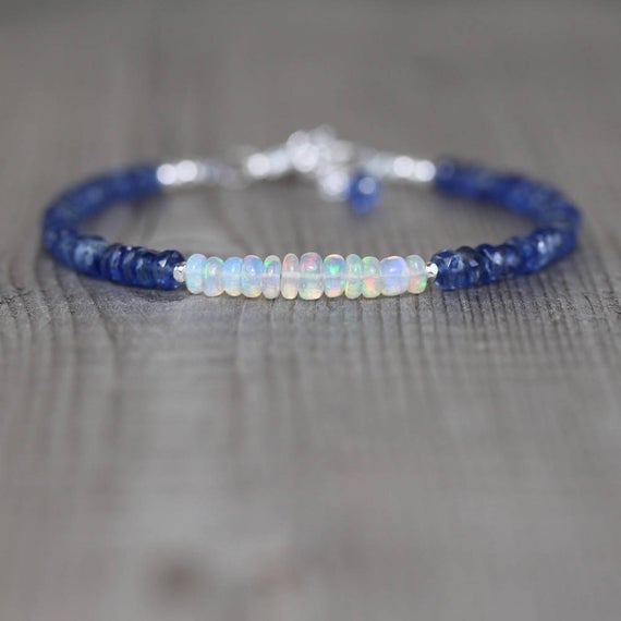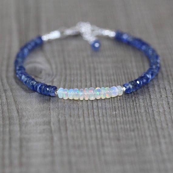 At a Great Price925 sterling Silver Bridesmaid Jewelry Silver Helling 3.5-4mm stacking Multi Ethiopian Welo Opal & Kyanite Bracelet Rondelle, Faceted & Smooth 7" for mens, womens, gf, bf & Adult.