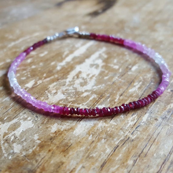 925 sterling silver chakras simple 2mm Multi Colour Ruby stacking Bracelet Rondelle, Faceted 18cm for mens, womens, gf, bf and adults.