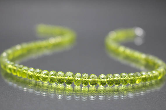 At a Great Price925 sterling Silver chakras simple 5-6mm stacking Green Peridot Necklace Rondelle, Faceted 17" for mens, womens.