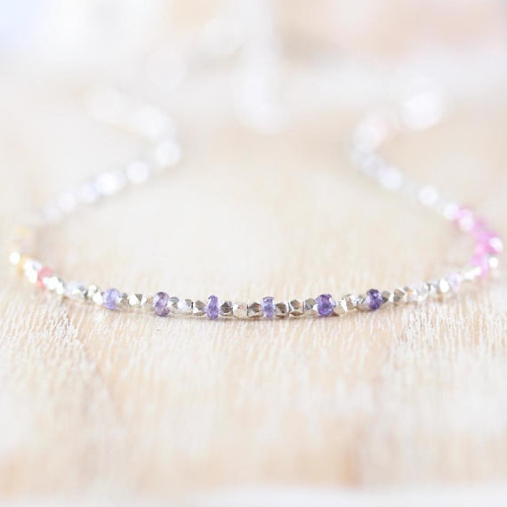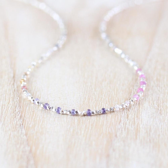 At a Great Price925 sterling Silver chakras simple Silver Helling 2.5mm stacking Multi Ombre Sapphire Necklace Rondelle, Faceted 16" for mens, womens, gf, bf & Adult.