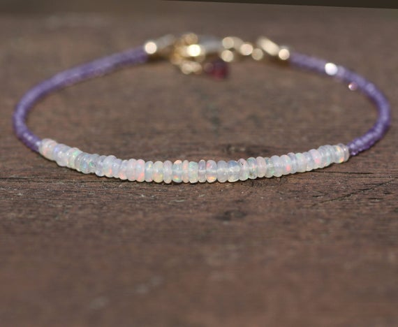 At a Great Price925 sterling Silver Dainty Slave Loose 2.5-3mm stacking Multi Natural Ethiopian Welo Opal and Amethyst Bracelet Round & Rondelle, Faceted & Smooth 7" for mens, womens, gf, bf & Adult.