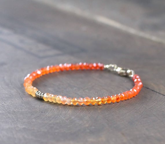 At a Great Price925 sterling silver Dainty Slave Loose 3mm Multi Colour Ombre Carnelian stacking Bracelet Rondelle, Faceted 18cm for mens, womens, gf, bf and adults.
