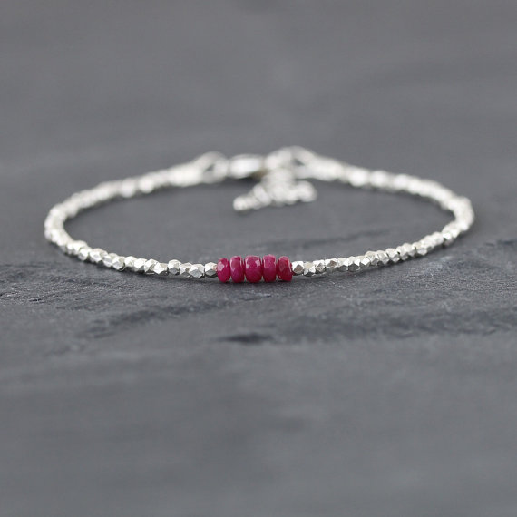 At a Great Price925 sterling Silver Dainty Slave Loose Silver Helling 3mm stacking Red Ruby Bracelet Rondelle, Faceted 7" for mens, womens, gf, bf & Adult.