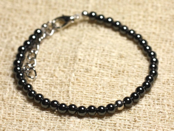 925 sterling Silver Dainty Slave Loose Silver Helling 4mm Stracking Black Hematite Bracelet Round, Smooth 7" for mens, womens, gf, bf & Adult.