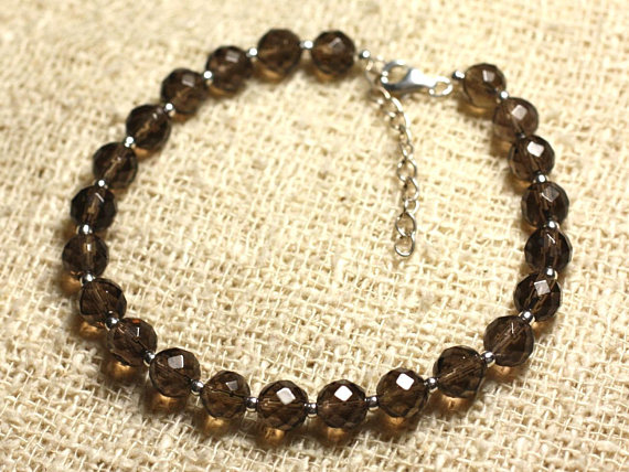 At a Great Price925 sterling Silver Dainty Slave Loose Silver Helling 6mm Stracking Brown smoky Quartz Bracelet Round, Faceted 7" for mens, womens, gf, bf & Adult.