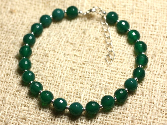 At a Great Price925 sterling Silver Dainty Slave Loose Silver Helling 6mm Stracking Green Green Onyx Bracelet Round, Faceted 7" for mens, womens, gf, bf & Adult.