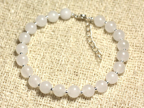At a Great Price925 sterling Silver Dainty Slave Loose Silver Helling 6mm Stracking White White Jade Bracelet Round, Smooth 7" for mens, womens, gf, bf & Adult.