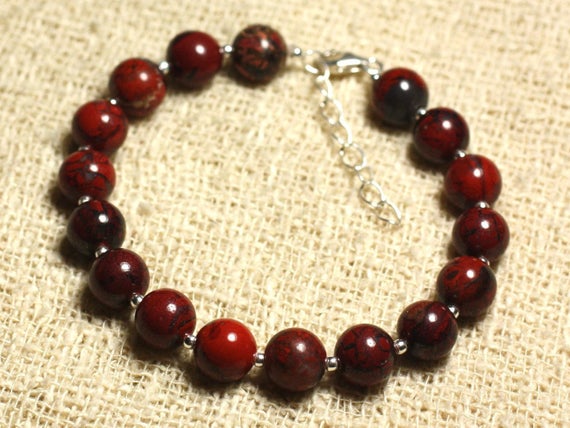 925 sterling Silver Dainty Slave Loose Silver Helling 8mm stacking Red Red Jasper Bracelet Round, Smooth 7" for mens, womens, gf, bf & Adult.