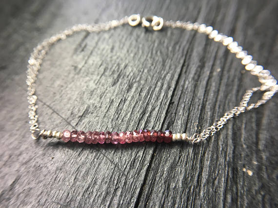 At a Great Price925 sterling Silver Empath Protection 2.5-3mm stacking Pink Ombre Spinel Bracelet Rondelle, Faceted 7" for mens, womens, gf, bf & Adult.