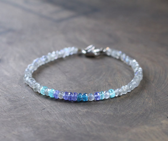 At a Great Price925 sterling silver Empath Protection 3-3.5mm Multi Colour Apatite, Tanzanite & Labradorite stacking Bracelet Rondelle, Faceted 18cm for mens, womens, gf, bf and adults.