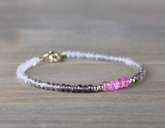 At a Great Price925 sterling silver Empath Protection 3-4mm Multi Colour Ombre Smoky Quartz & Pink Tourmaline stacking Bracelet Rondelle, Faceted 18cm for mens, womens, gf, bf and adults.