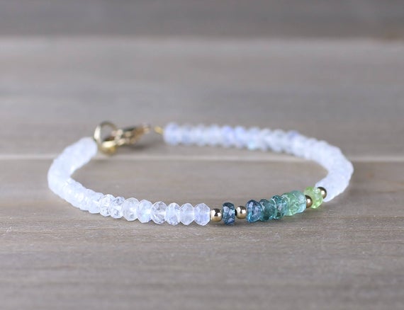 At a Great Price925 sterling silver Empath Protection 3.5-4mm Multi Colour Ombre Blue Green Tourmaline & Moonstone stacking Bracelet Rondelle, Faceted 18cm for mens, womens, gf, bf and adults.