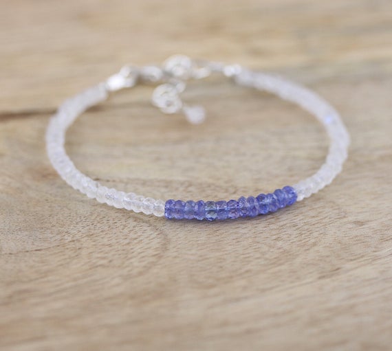At a Great Price925 sterling Silver Empath Protection 3.5mm stacking Multi Tanzanite & Rainbow Moonstone Bracelet Rondelle, Faceted 7" for mens, womens, gf, bf & Adult.