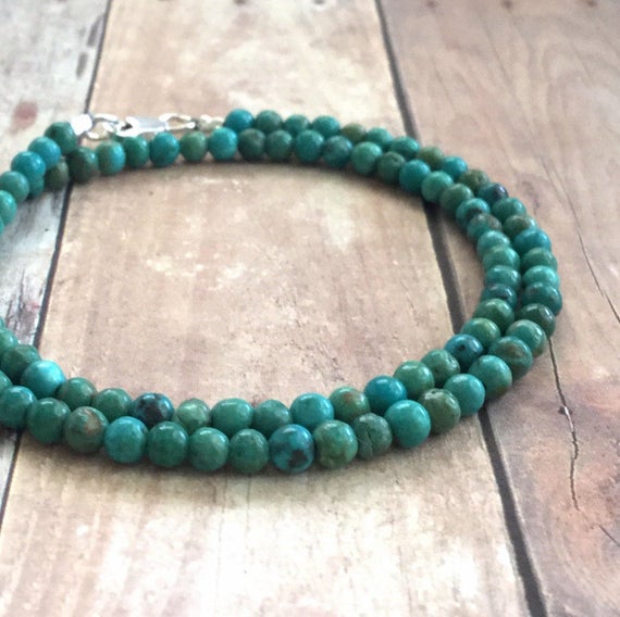At a Great Price925 sterling silver Empath Protection 4mm Green Genuine Turquoise stacking Bracelet Round, Smooth 18cm for mens, womens, gf, bf and adults.