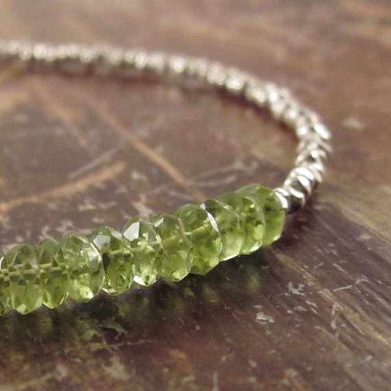 925 sterling silver Empath Protection 4MM Green Peridot stacking Bracelet Rondelle, Faceted 18cm for mens, womens, gf, bf and adults.
