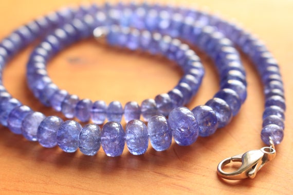 At a Great Price925 sterling Silver Empath Protection 6-10mm stacking Blue tanzanite Necklace Rondelle, Smooth 17" for mens, womens.