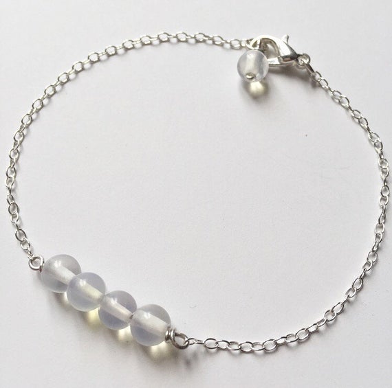 At a Great Price925 sterling Silver Empath Protection 6mm stacking White OPAL Bracelet Round, Smooth 7" for mens, womens.