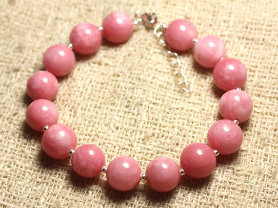 At a Great Price925 sterling Silver Empath Protection Silver Helling 10mm Stracking Pink Pink Jade Bracelet Round, Smooth 7.5" for mens, womens, gf, bf & Adult.