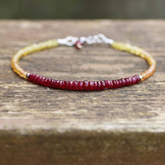 925 sterling Silver Empath Protection Silver Helling 3-4mm stacking Multi Sapphire , Ruby Bracelet Rondelle, Faceted 7" for mens, womens, gf, bf & Adult.