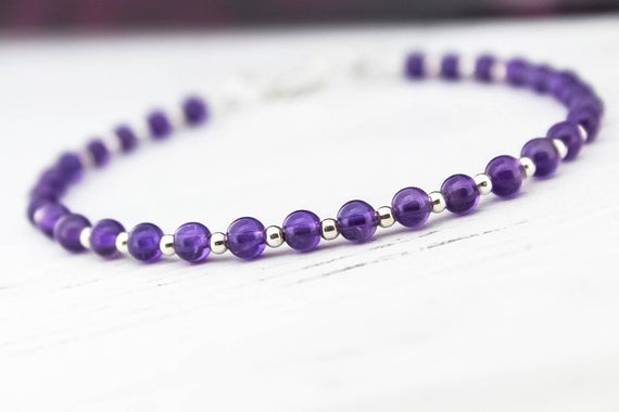 At a Great Price925 sterling Silver Empath Protection Silver Helling 4mm stacking Purple Amethyst Bracelet Round, Smooth 7" for mens, womens.