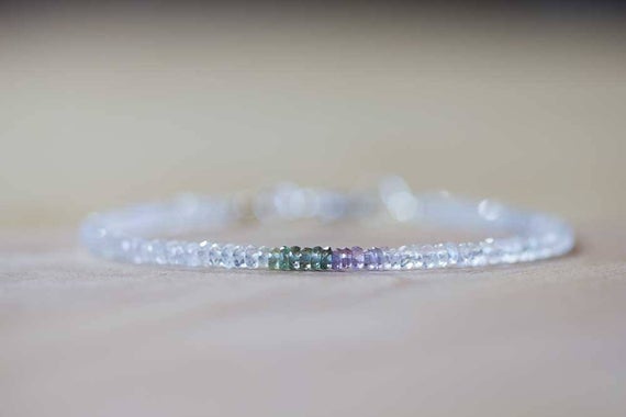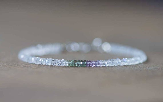 At a Great Price925 sterling silver Galaxy Jewelry 2.5-3mm Multi Colour Moonstone ,Green & Purple Sapphire, stacking Bracelet Rondelle, Faceted 18cm for mens, womens, gf, bf and adults.