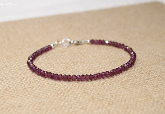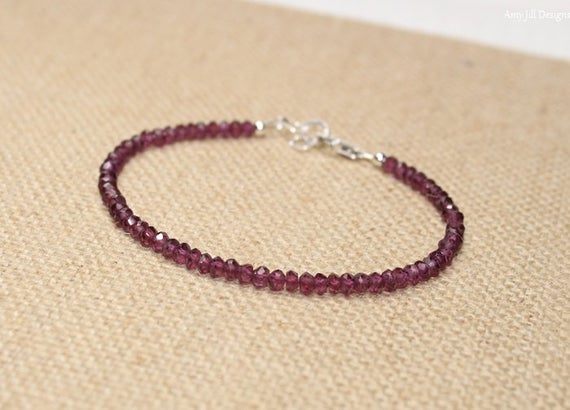 At a Great Price925 sterling Silver Galaxy Jewelry 3-3.5mm stacking Red Rhodolite Garnet Bracelet Rondelle, Faceted 7" for mens, womens, gf, bf & Adult.