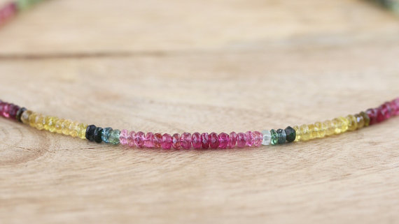 At a Great Price925 sterling Silver Galaxy Jewelry 3.5mm stacking Multi Tourmaline Necklace Rondelle, Faceted 16" for mens, womens, gf, bf & Adult.