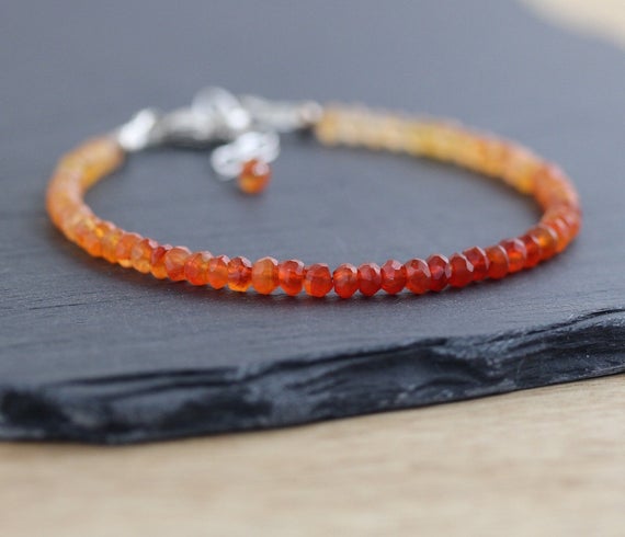 At a Great Price925 sterling Silver Galaxy Jewelry 3.5mm stacking Orange Carnelian Bracelet Rondelle, Faceted 7" for mens, womens, gf, bf & Adult.