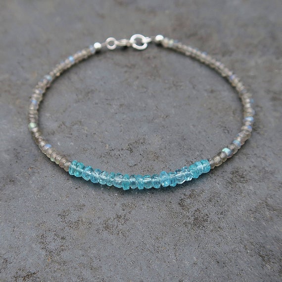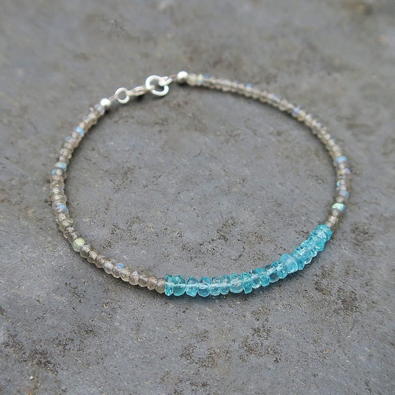 At a Great Price925 sterling Silver Galaxy Jewelry 3mm stacking Multi Apatite and Labradorite Bracelet Rondelle, Faceted 7" for mens, womens.