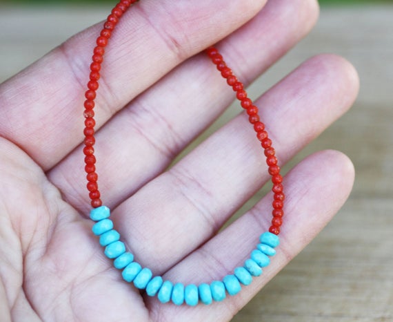 At a Great Price925 sterling Silver Galaxy Jewelry 4-4.5mm stacking Blue & Orange Natural Arizona Turquoise and Orange Coral Bracelet Round & Rondelle, Faceted & Smooth 7" for mens, womens, gf, bf & Adult.