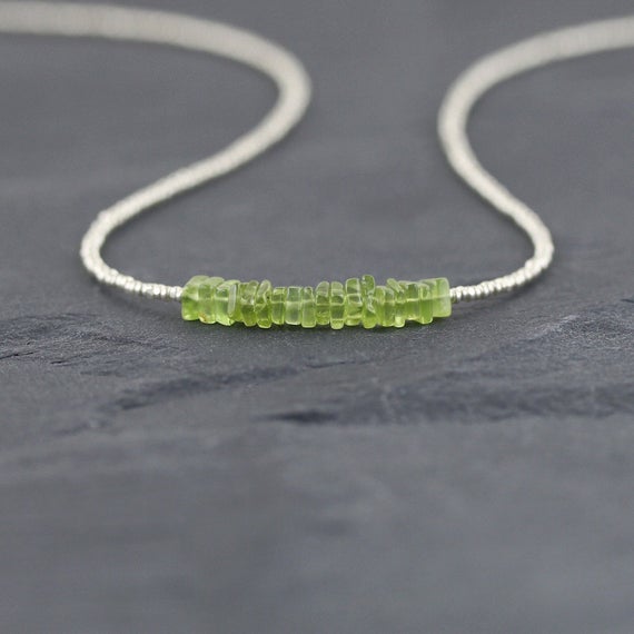 At a Great Price925 sterling Silver Galaxy Jewelry 4-4.5mm stacking Green Peridot Necklace Square, Faceted 16" for mens, womens, gf, bf & Adult.