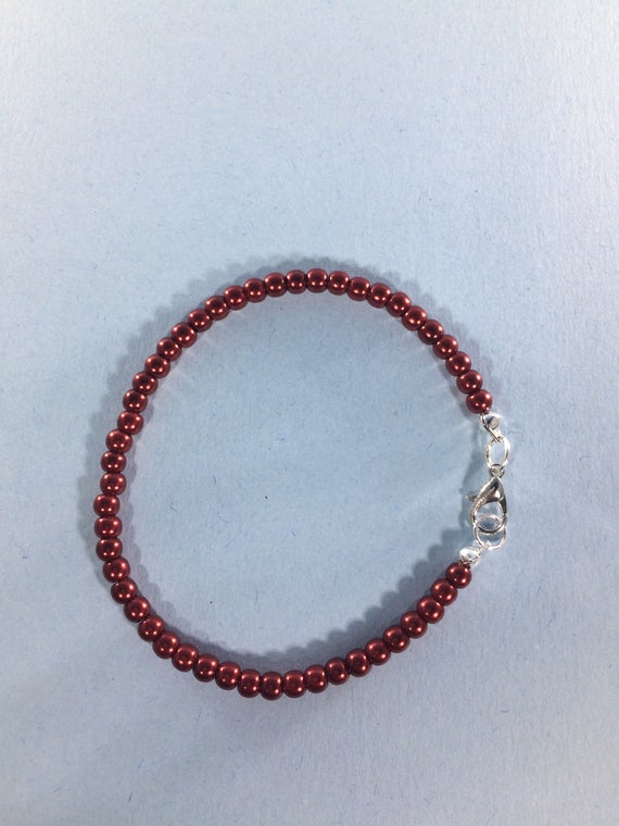 At a Great Price925 sterling Silver Galaxy Jewelry 4-5mm stacking Red Red Pearl Bracelet Round, Smooth 7" for mens, womens, gf, bf & Adult.