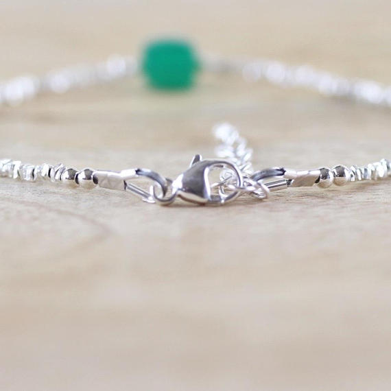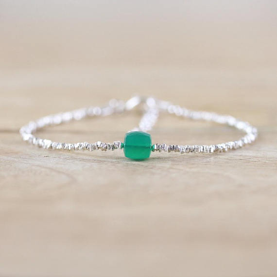 At a Great Price925 sterling Silver Galaxy Jewelry 5mm stacking Green Emerald Green Onyx Bracelet Box, Faceted 7" for mens, womens, gf, bf & Adult.