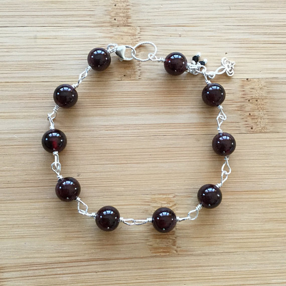 At a Great Price925 sterling Silver Galaxy Jewelry 7mm stacking Red Garnet Bracelet Round, Smooth 7" for mens, womens.