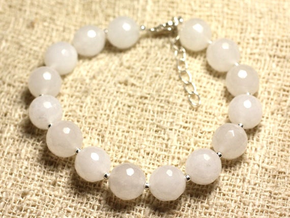 At a Great Price925 sterling Silver Galaxy Jewelry Silver Helling 10mm Stracking White White Jade Bracelet Round, Faceted 7.5" for mens, womens, gf, bf & Adult.