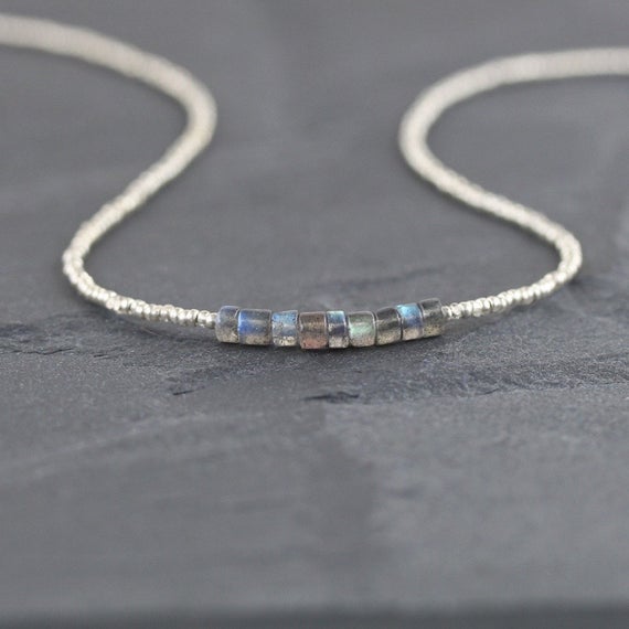 At a Great Price925 sterling Silver Galaxy Jewelry Silver Helling 4-4.5mm stacking Gray Labradorite Necklace Tyre, faceted 16" for mens, womens, gf, bf & Adult.